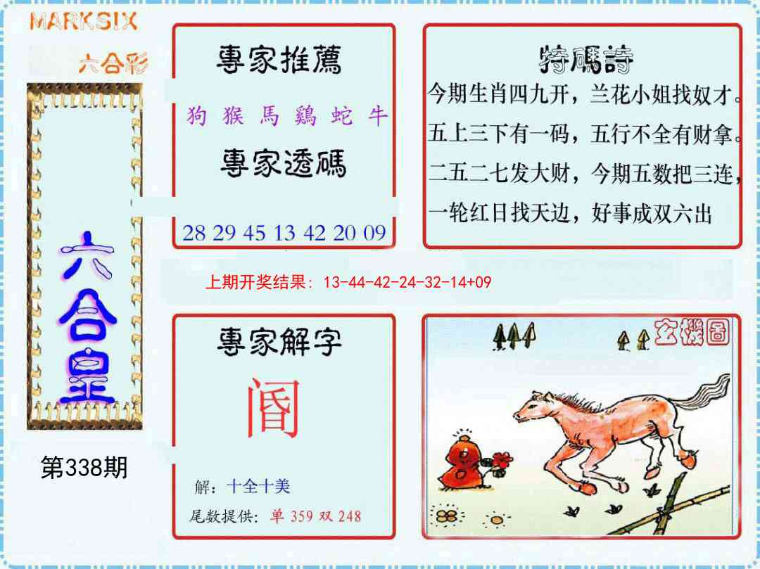 338期: 澳门六合宝典彩圖信封【赌王心水】每期自动更新